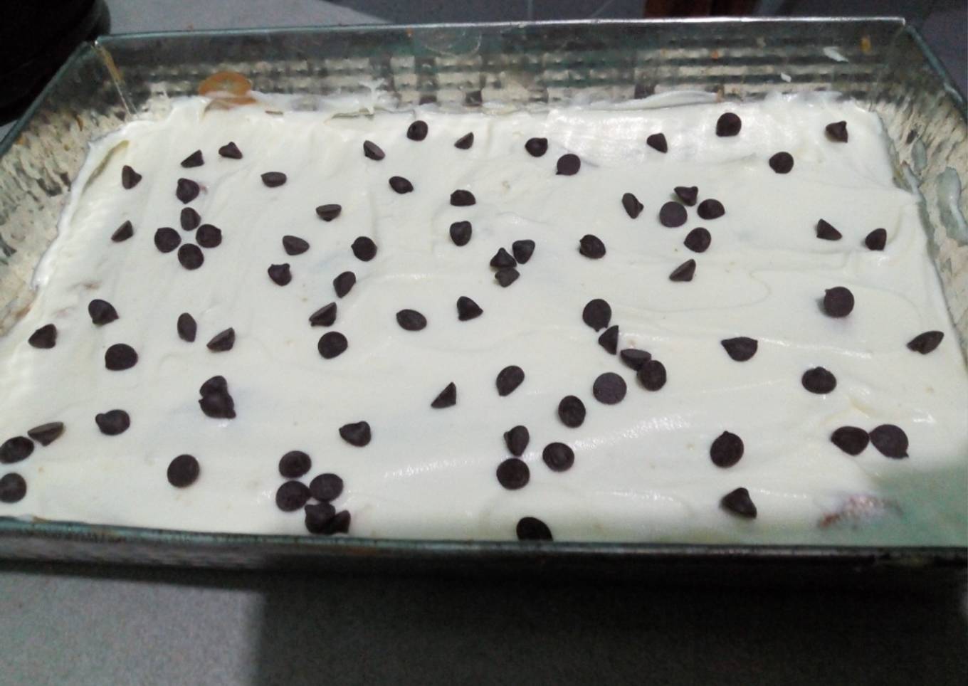 - Y por encima de las vainillas colocamos la capa de crema batida...unos chip de chocolate para decorar.. O rockets..y a la heladera hasta el momento de servir