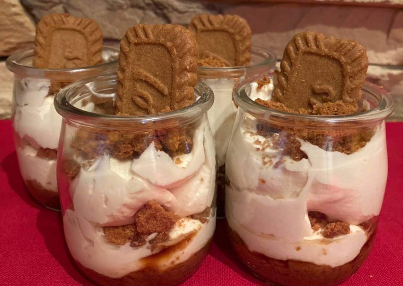 - Ahora ya lo tenemos todo listo para montarlo, cogemos el recipiente que más nos gusté, mojamos una galleta y media de lotus con el café y ponemos en el fondo, añadimos una capa del mascarpone, hacemos otra con las migas, repetimos la misma operación otra vez y lo dejamos un rato en la nevera para que esté bien fresquito al servir!