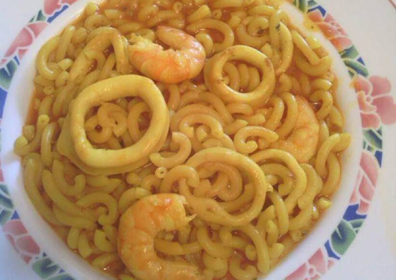 - Cocemos 8-10 min sofreír la fideuá y colorante echar agua y cocer 8 minuto echar las gambas y dejar 2 minutos.