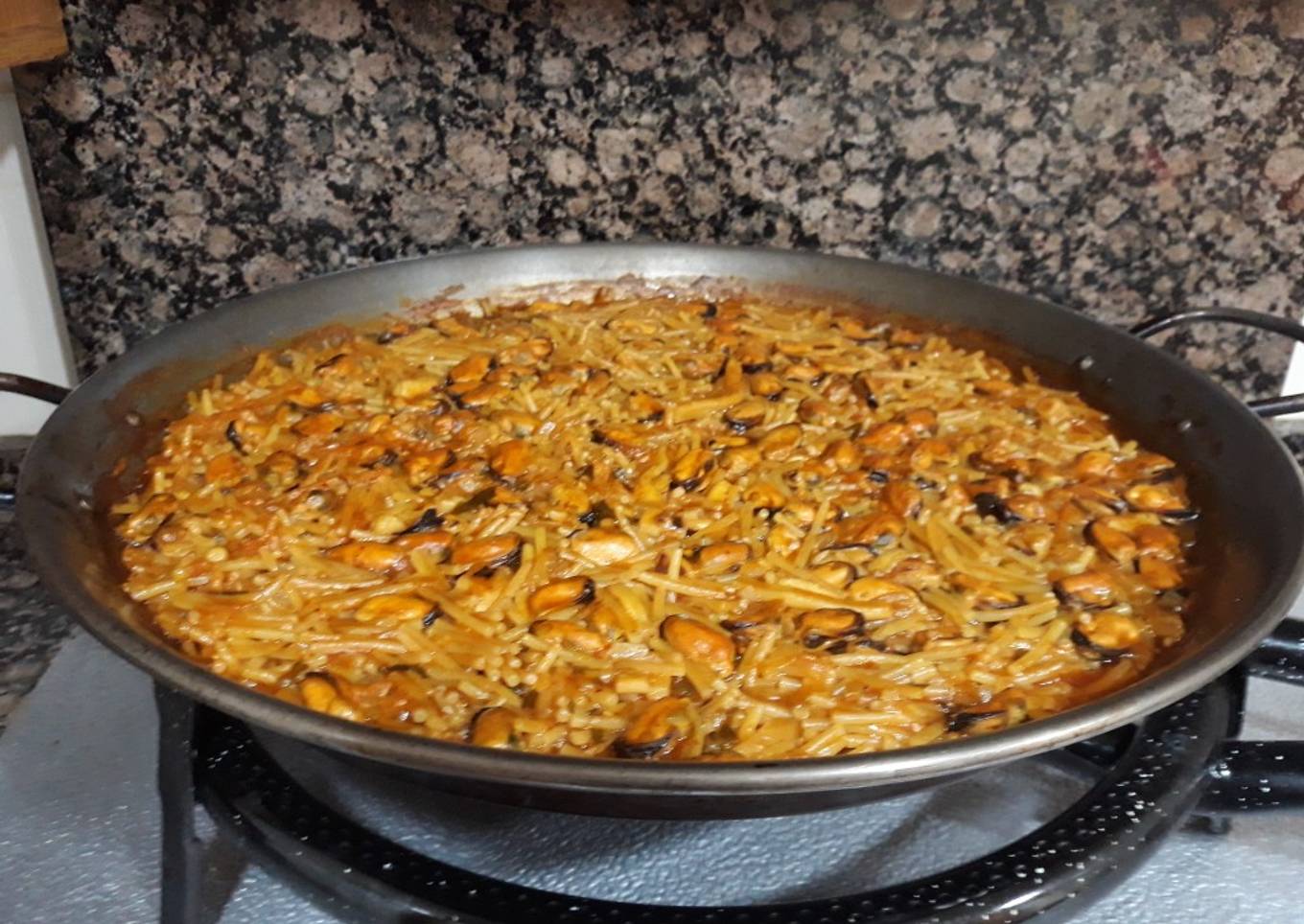 Fideuá de mejillones y calamares