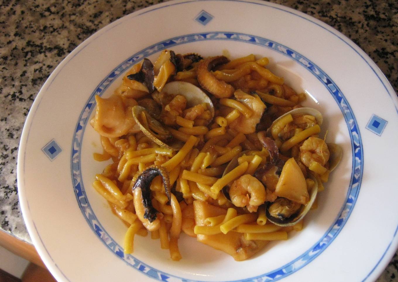 Una fideua deliciosa, con sepia, gamabs y almejas.