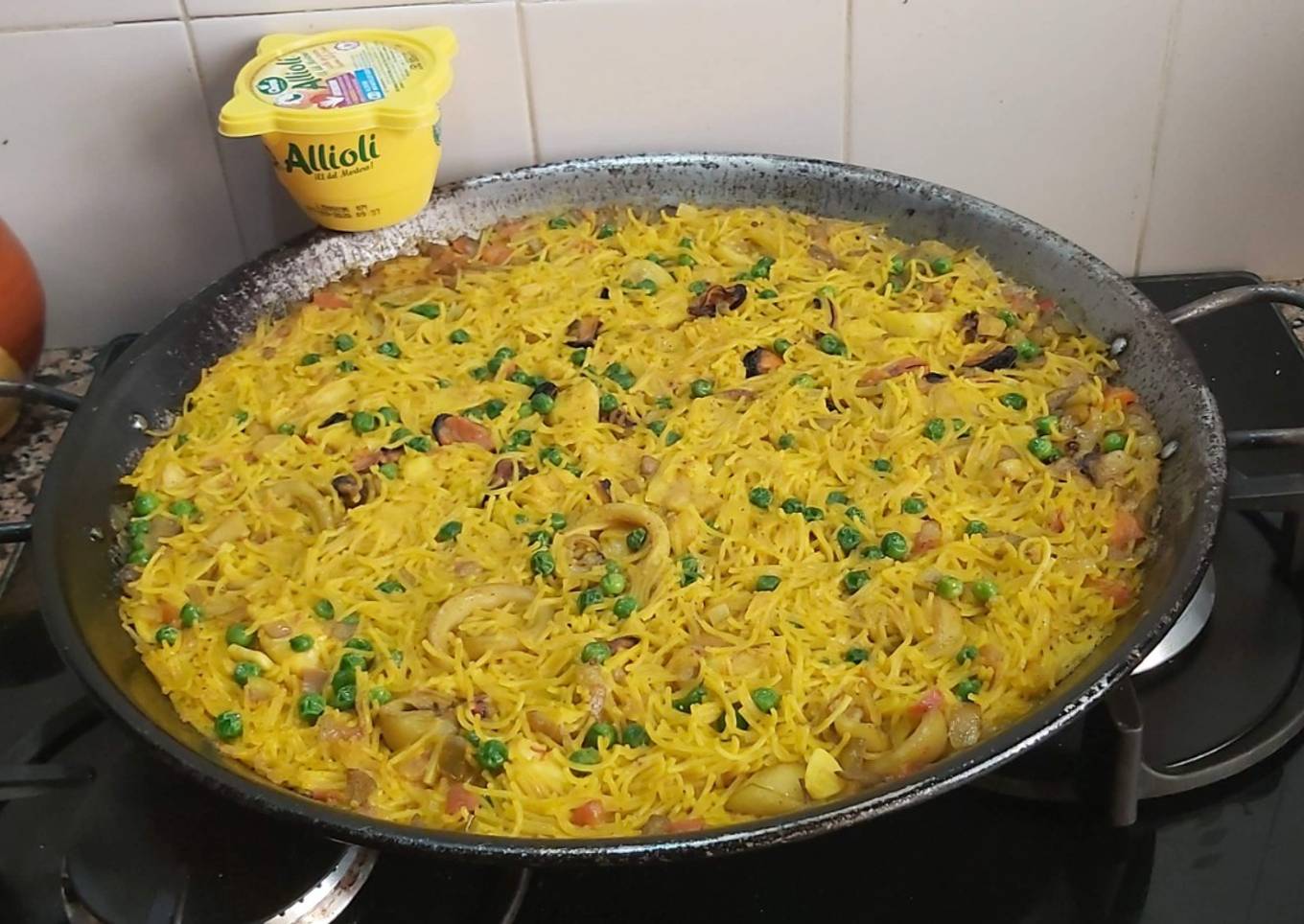 - Apagar el fuego y dejar reposar, los fideos se pondrán de punta. Acompañar de un buen alioli.