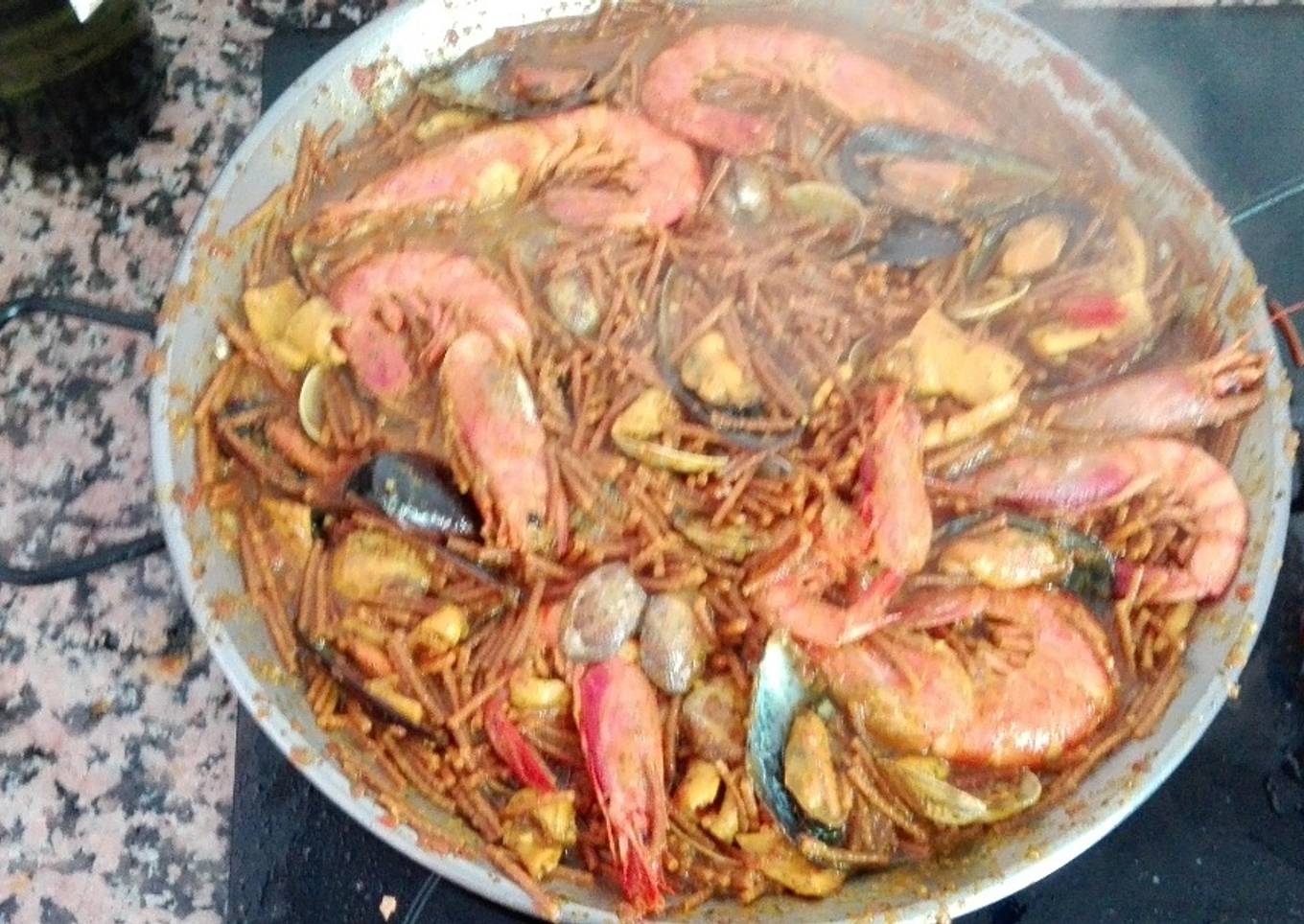 - Una vez bien echo el sofrito se incorpora los fideos y caldo de pescado incorporamos las gambas hasta que se consuma el caldo queden tiernos los fideos a disfrutarla