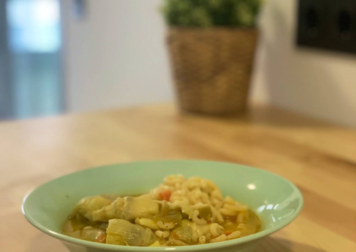 - Agregue la pasta y las alcachofas. Programe 10 min/100 grados/giro inverso/vel 1. Vierta en una fuente y deje reposar unos minutos. Sirva con un chorrito de limón. ¡A disfrutar!
