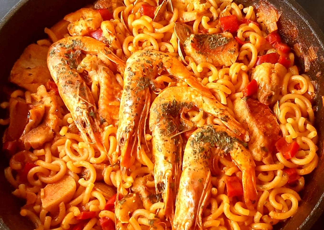 Hello everybody, it's Drew, welcome to my recipe site. Today, I will show you a way to prepare a distinctive dish, Fideuá con salmonetes y gambas. It is one of my favorites. This time, I'm gonna make it a little bit unique. This is gonna smell and look delicious.
