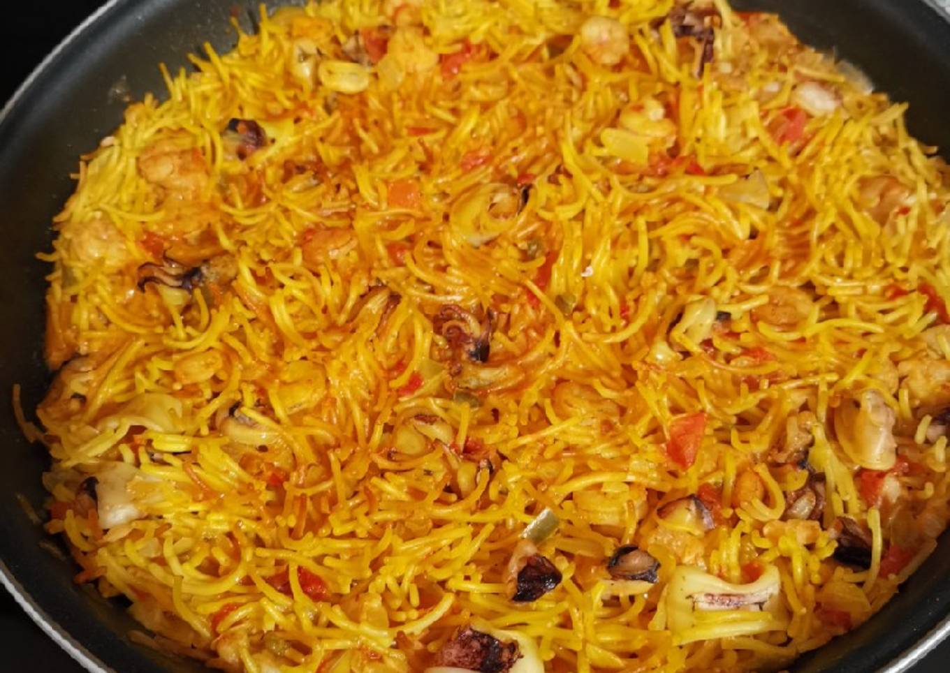 Hello everybody, I hope you're having an amazing day today. Today, I'm gonna show you how to prepare a special dish, Fideuá de calamares y gambas. It is one of my favorites food recipes. For mine, I will make it a bit tasty. This is gonna smell and look delicious.