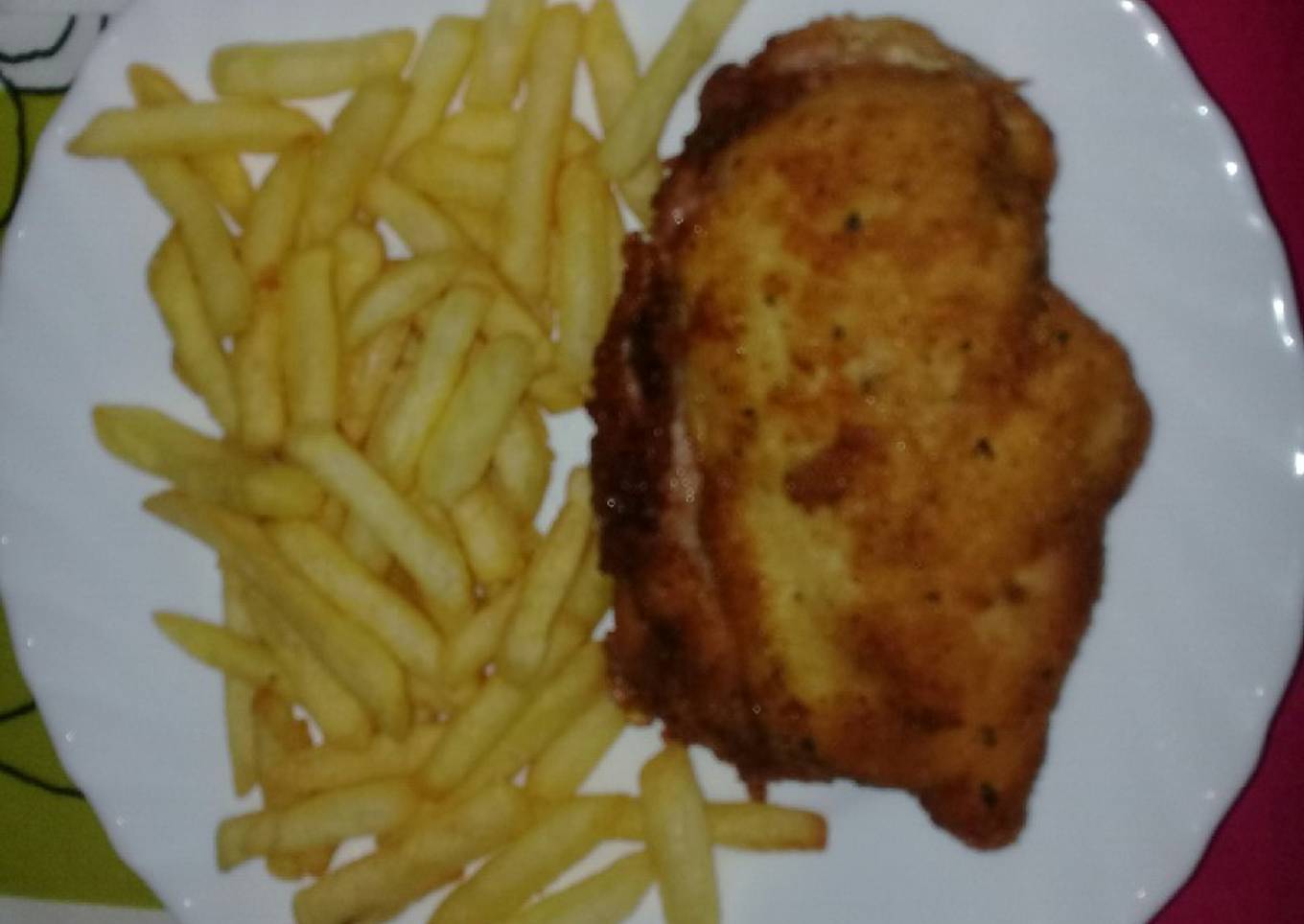 Cachopo de pollo con patatas fritas