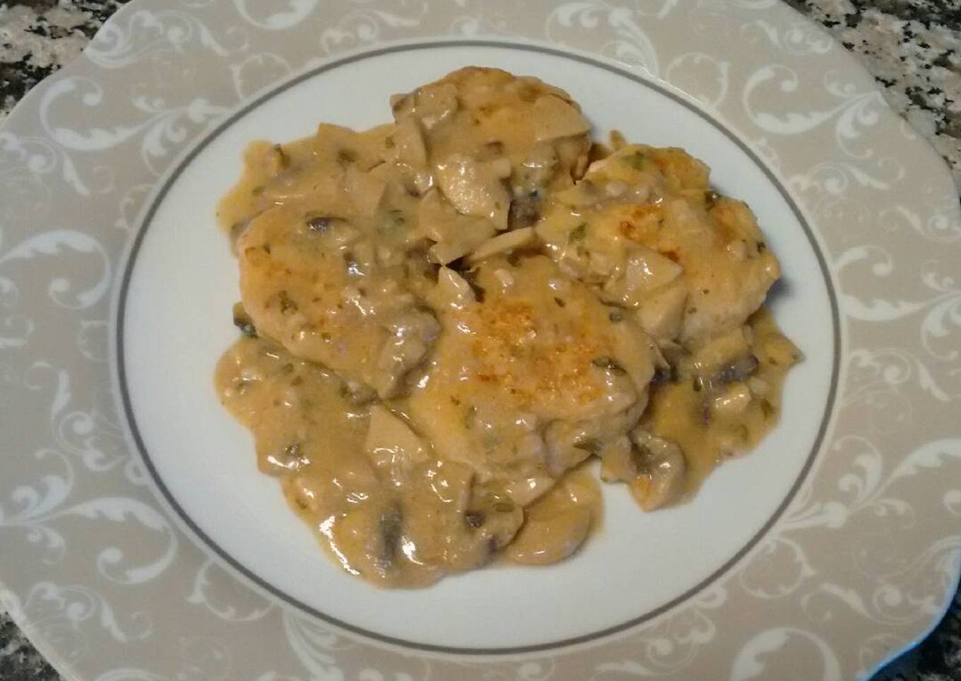 Medallones de pechuga de pollo picada en salsa de champiñón