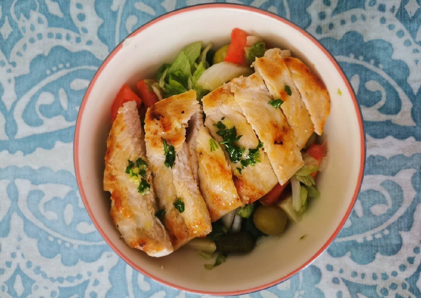 Ensalada con pechuga de pollo asada
