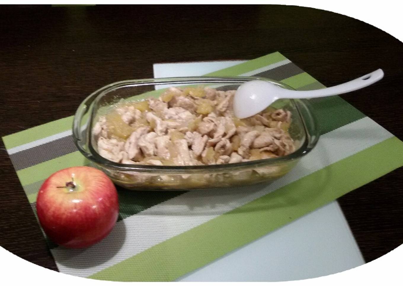 Pechuga de pollo fileteada con manzana y cebolla, al horno (hecha en robot de cocina)