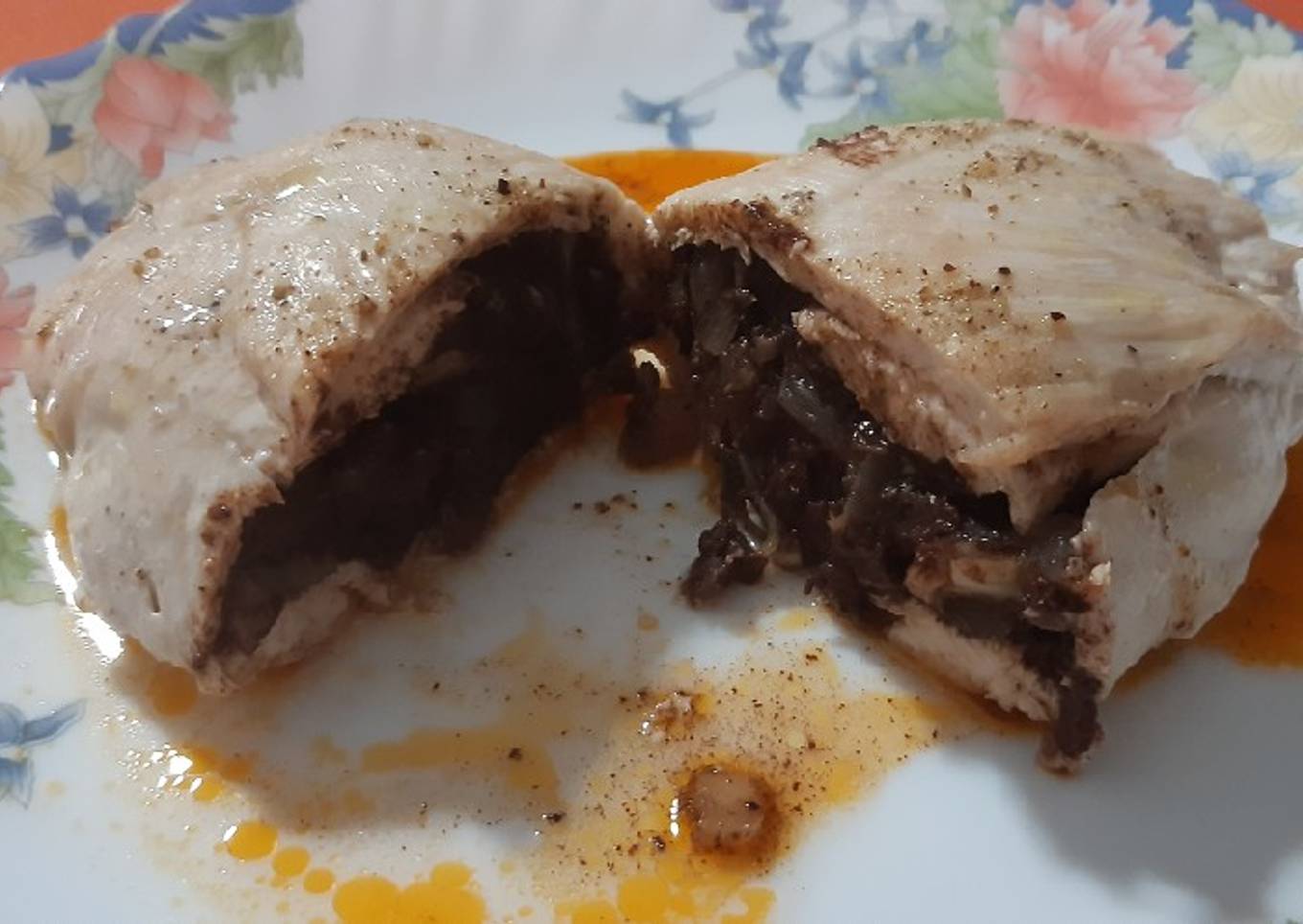 Steps to make to make Pechuga de pollo rellena de morcilla de cebolla