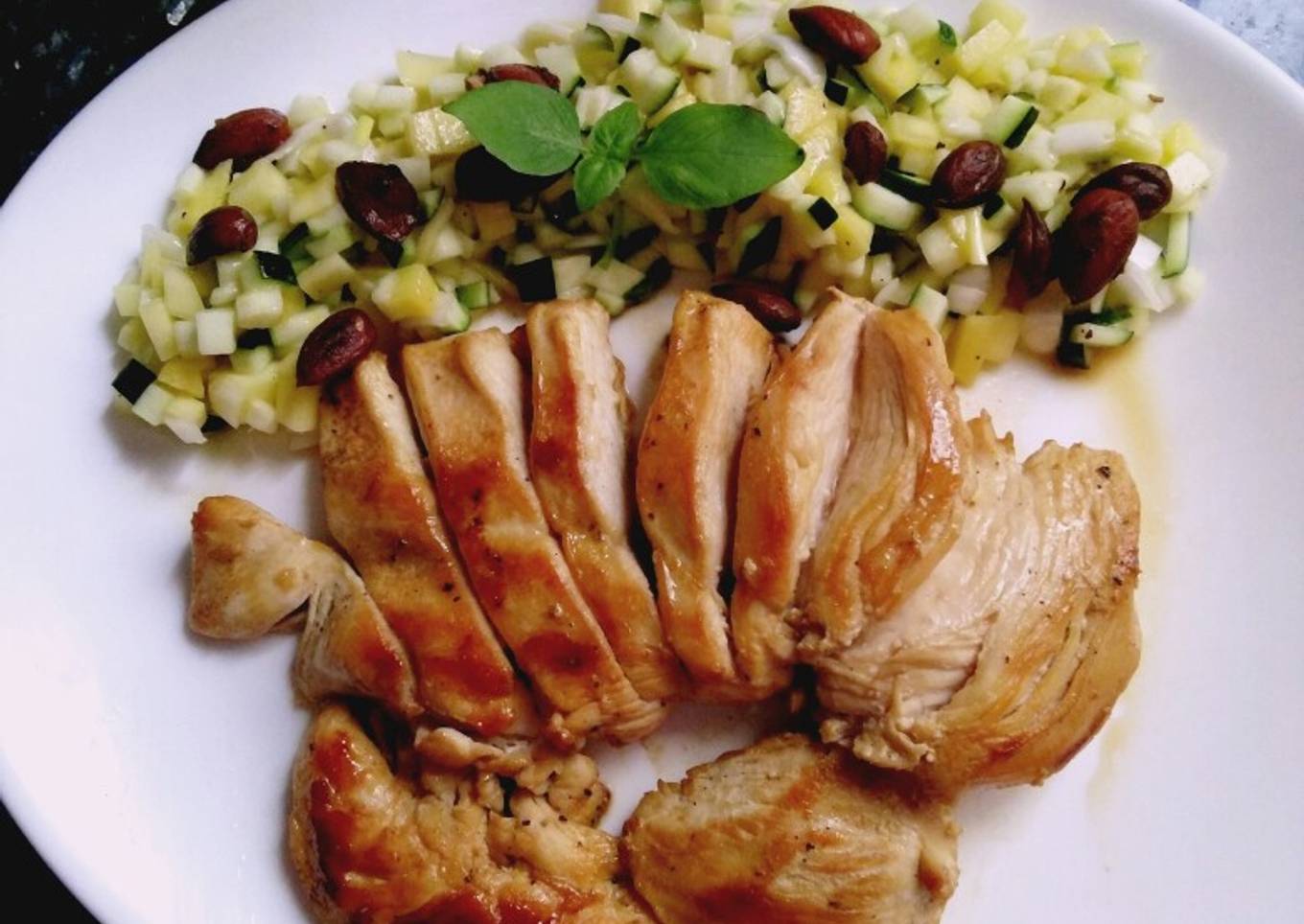 Pechuga de pollo con ensalada de mango y calabacín