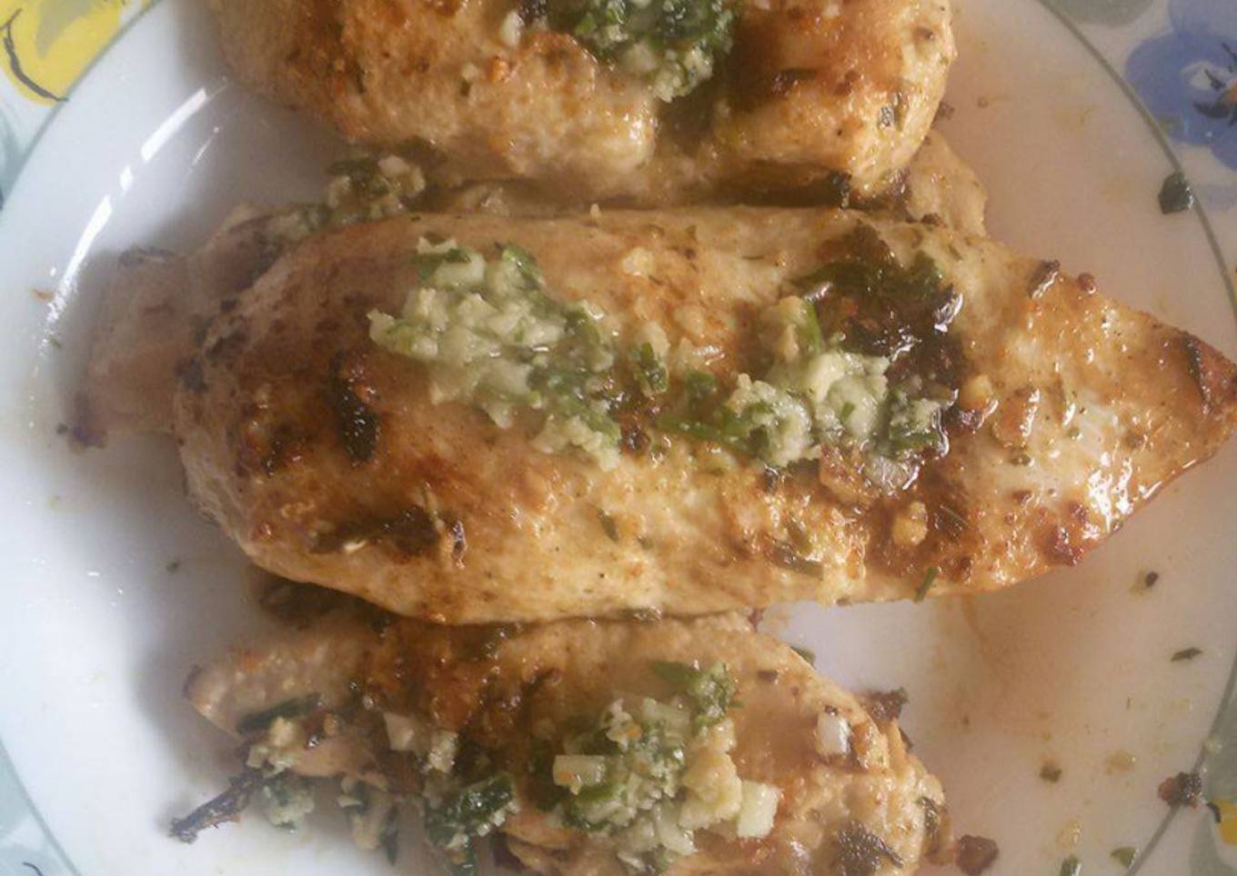 - Y ya está listo. Ahora solo queda poner por encima de las pechugas de pollo el contenido del mortero que habíamos guardado antes y listo para servir.