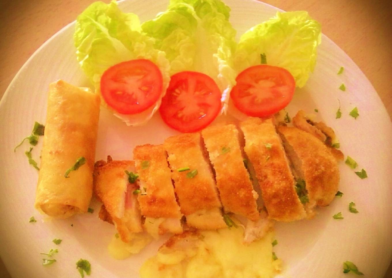 Pechugas de pollo rebozadas y rellenas de jamon york y queso