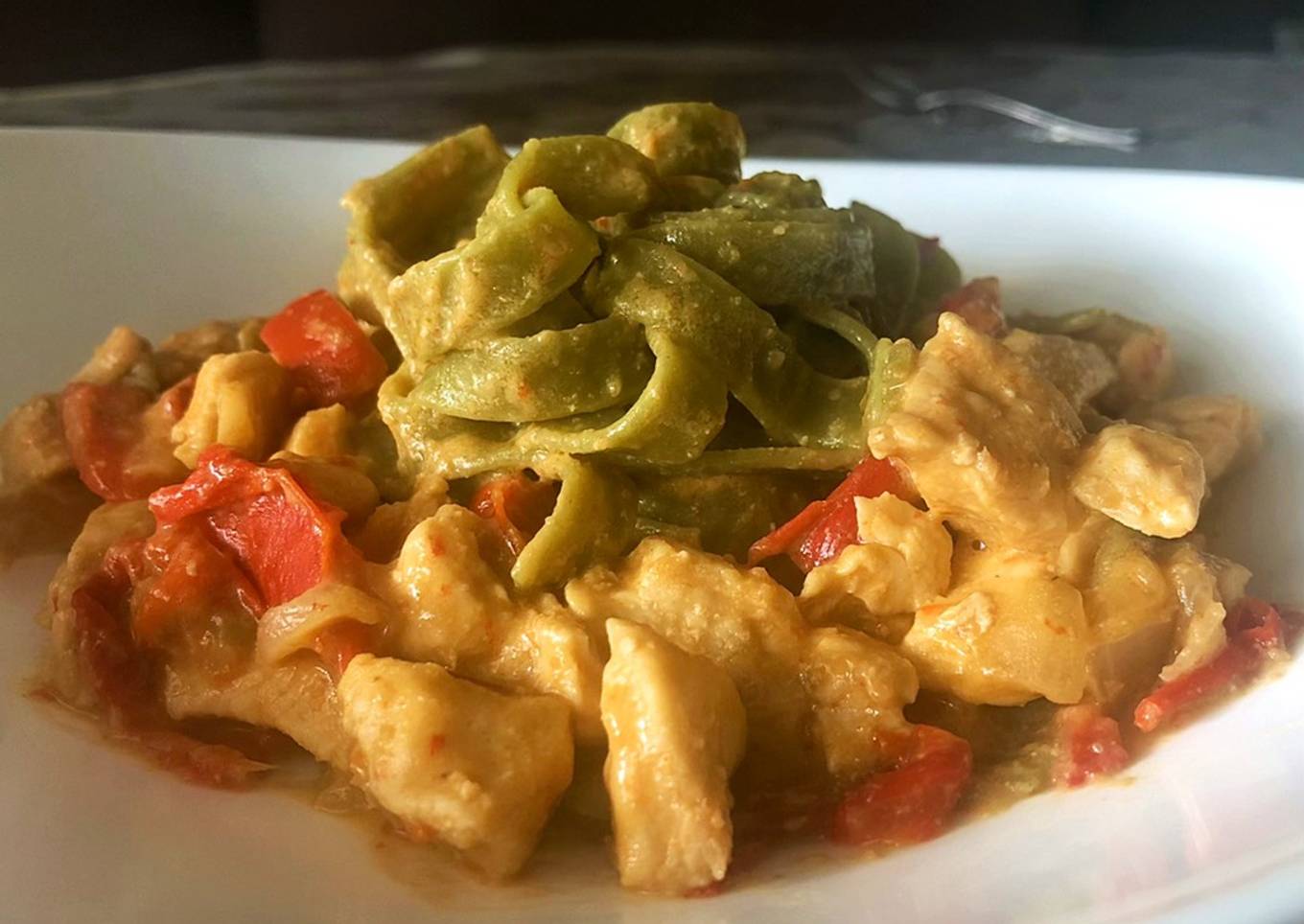 Hello everybody, hope you are having an incredible day today. Today, I'm gonna show you how to prepare a distinctive dish, Tallarines de espinaca con pollo en salsa de cacahuete. One of my favorites. For mine, I will make it a little bit unique. This will be really delicious.